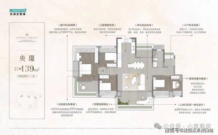 139㎡户型更是做到双主套设计,31㎡总统级主卧套房配备独立衣帽间、双台盆卫浴和 L 型观景飘窗,南北双阳台实现空气对流,适合三代同堂或三孩家庭一步到位。
