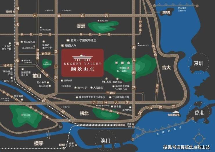 珠海市前山核心位置,南边依板障山脉,板障山是横跨珠海市区的龙脉、富人集聚区,而板障山森林公园是市区瞰海、揽山、阅城的最佳胜地,是喧闹繁市中自然宜居最好的体现。