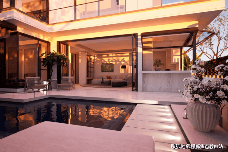 通过庭院与湿地湖景链接,实现头排无界亲水视野