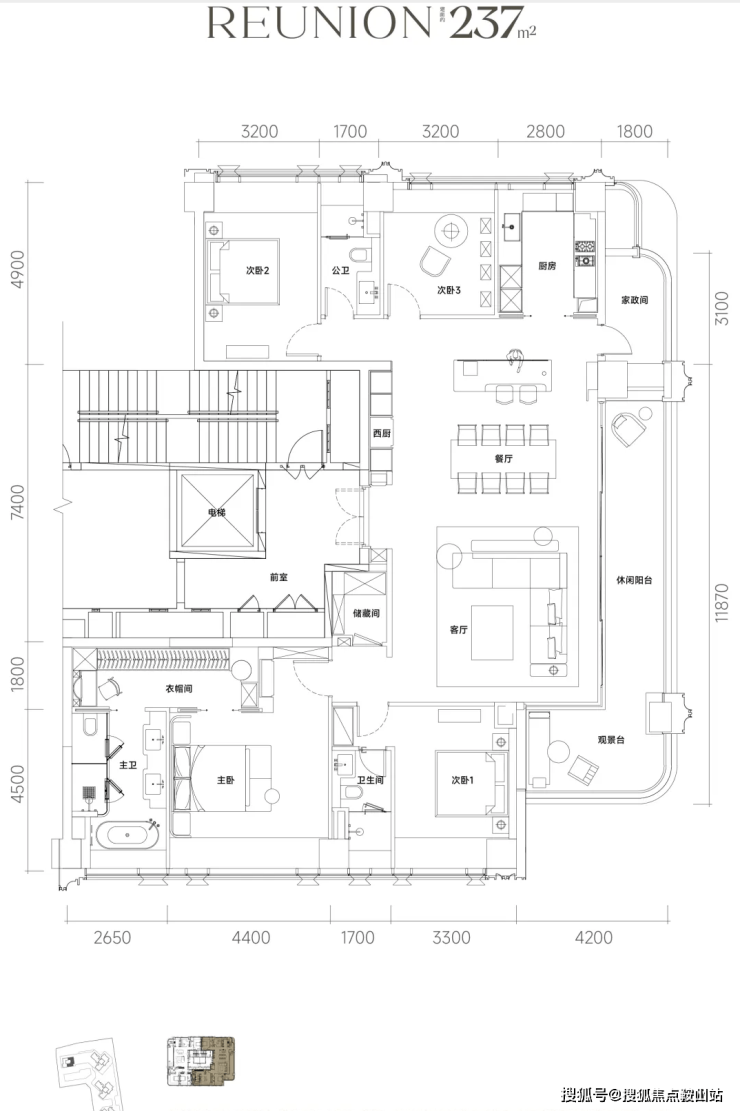 今年首开1栋的小高层住宅,约42套197-237㎡四房大平层。