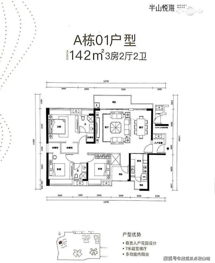 A栋01户型 建筑面积约142㎡ 3房2厅2卫