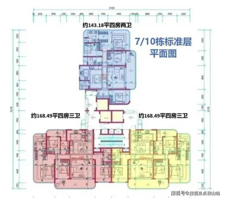 143-195㎡(3T3):起步四房,部分户型带西厨、看海景