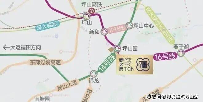 地铁14号线设计时速120公里,5站到大运,10站到布吉,11站到罗湖,13站直达福田岗厦北,工作日高峰时段约45分钟可达。地铁16号线设计时速80公里,3站可到坪山高铁站,快速通往深圳北站、福田中心区、香港西九龙等。