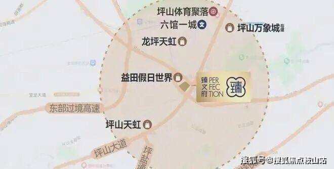 此外,项目周边还有龙坪天虹购物中心(建筑面积4万平方米,2021年12月开业)、坪山老街、佳华沙湖广场、约6万㎡佳华佳漾里(招商中)、等传统商业配套,满足日常消费需求。坪山万象城虽原计划2025年开业,但因部分地块更新计划失效,目前尚未动工,但根据2025年12月报道,坪山大草坪计划建设万象系商业。