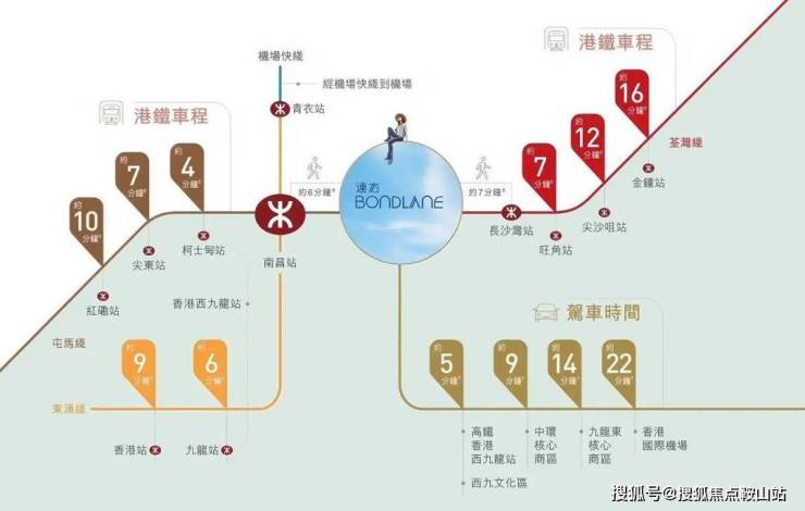 项目坐拥双站三线之便,距离港铁南昌站约6分钟步程,距离长沙湾港铁站约7分钟步程,即可乘搭束涌线、屯马线及荃湾线,瞬抵港九新界多区,尽享铁路无缝连。从“连方BONDLANE”系列出发,经完善纵横之干道驾车往西九龙高铁站约5分钟,往中环约9分,往场约22分钟。穿梭全港,连接世界更便捷。