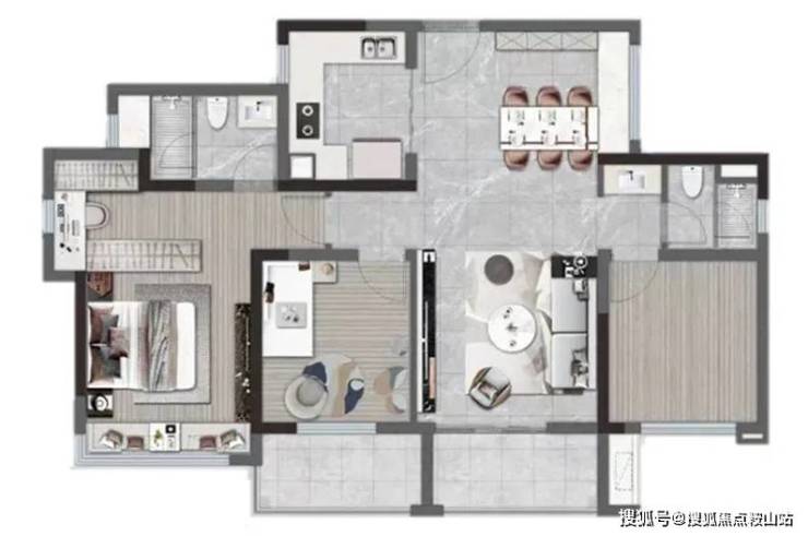 步至家中,通过健康玄关系统,宽敞舒适的客厅可以让人卸下一天的疲惫,客餐厨一体化的LDK模块使烹饪成为家人间互动的时光。入夜时分,或是在阳台惬意小酌观星,或是在书房与孩子静读,或是在化妆间做面部spa,家赋予人们的,是让生活在烟火气中不失精致品质。