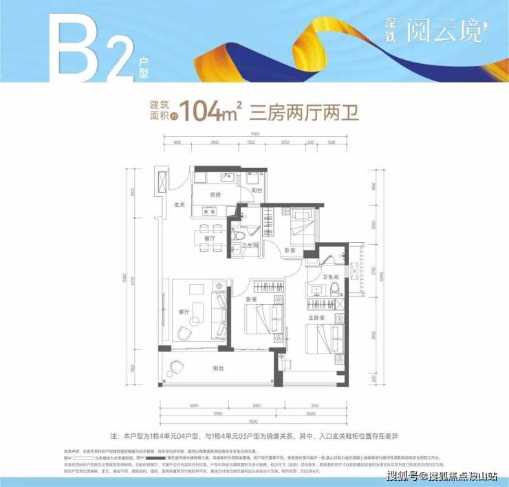【建筑面积104㎡3房2卫】