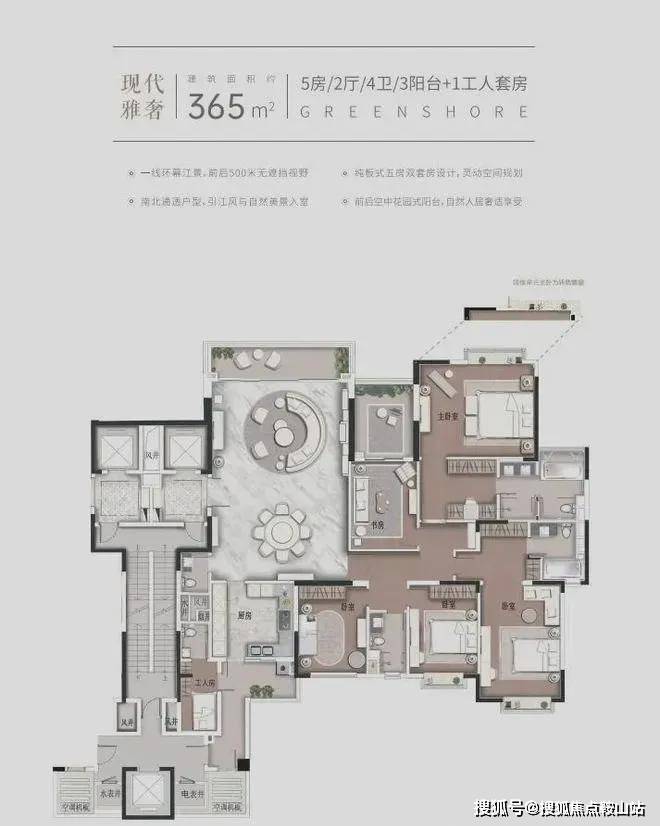 约365㎡5房双套房|2厅|4卫|3阳台+1工人套房
