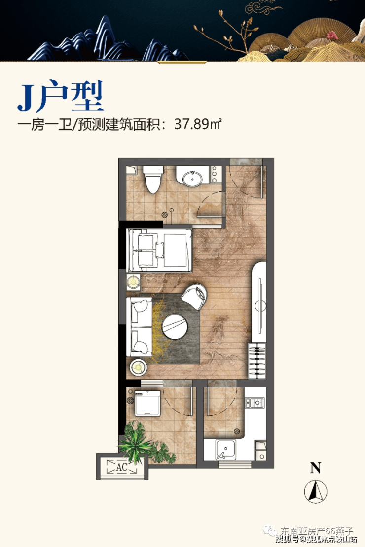 项目户型:37.89平米一房一厅