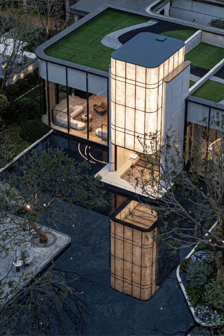 •汀上秀场|约1000㎡纯粹精神修秀场,泠汀水院/琉璃光塔/约160m林影游廊,时刻上演高定生活大片。