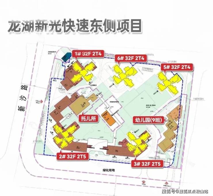 项目将建5栋32层高的住宅楼,围合式布局。