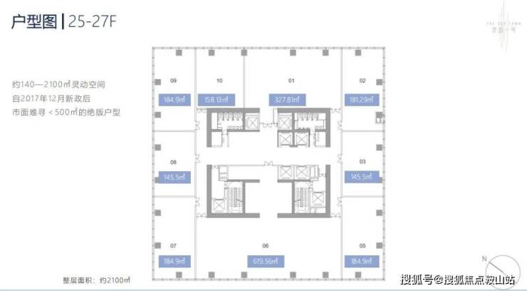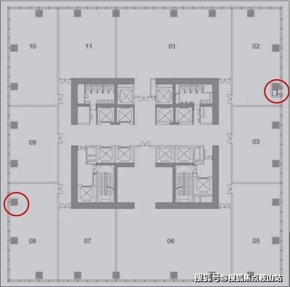 • 仅27层商务空间划分高中低三个电梯分区,分区细致