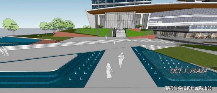 • 约50米宽城市绿化带汇成开阔大气的前广场,居高临下视觉
