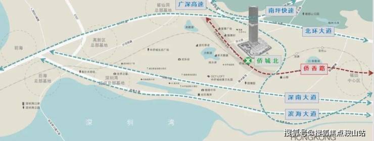 • 盘踞于北环大道、广深高速、南坪快速及侨香路四大主干道交汇中心,从东往西直至机场,楼体清晰可见,昭示性无可比拟