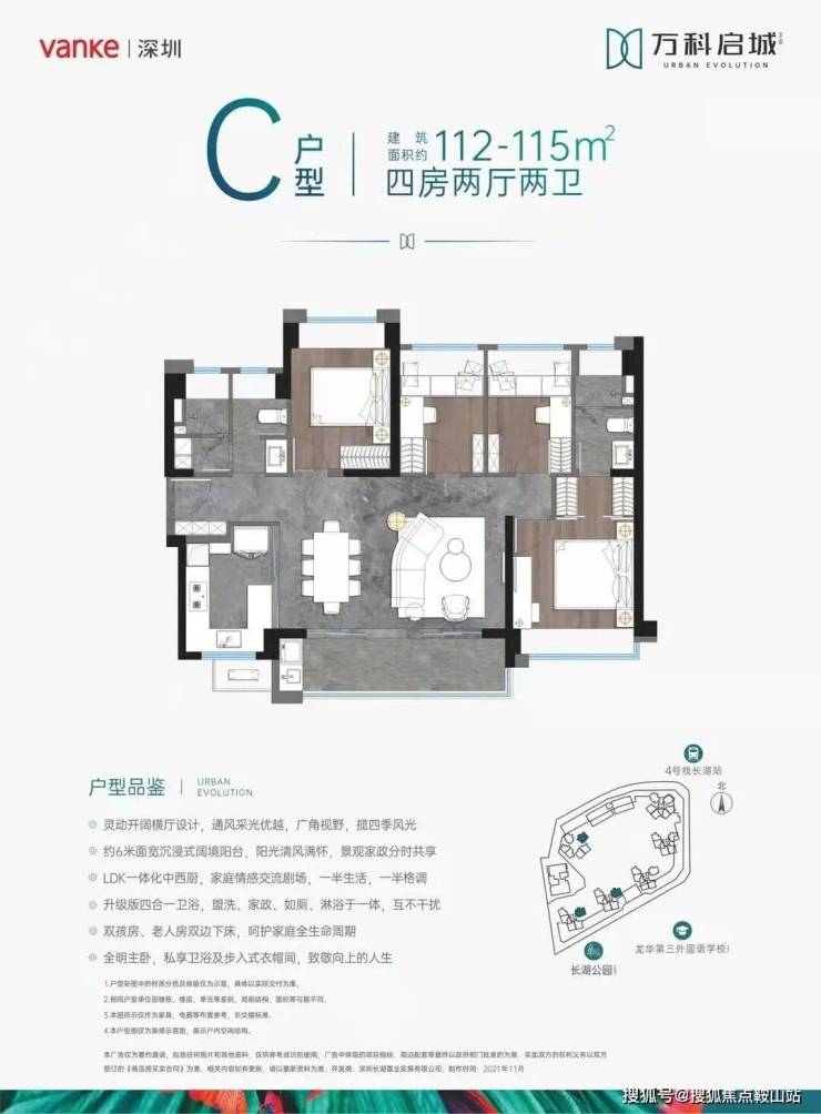 配备全龄段优质箐英教育,周边优质学府汇聚,项目配建建面约2400㎡幼儿园,邻近9年一贯制优质学校——龙华区第三外国语学校(在建中),周边汇集多所百年老校,书香氛围浓厚,汇集有观澜第二小学(市一级)、观澜第二中学(省一级),一站式全优教育配套。数据来源:龙华教育官网,学校(含幼儿园)的建成,开放时间,学区划分、入学政策以教育局及学校规定为准。