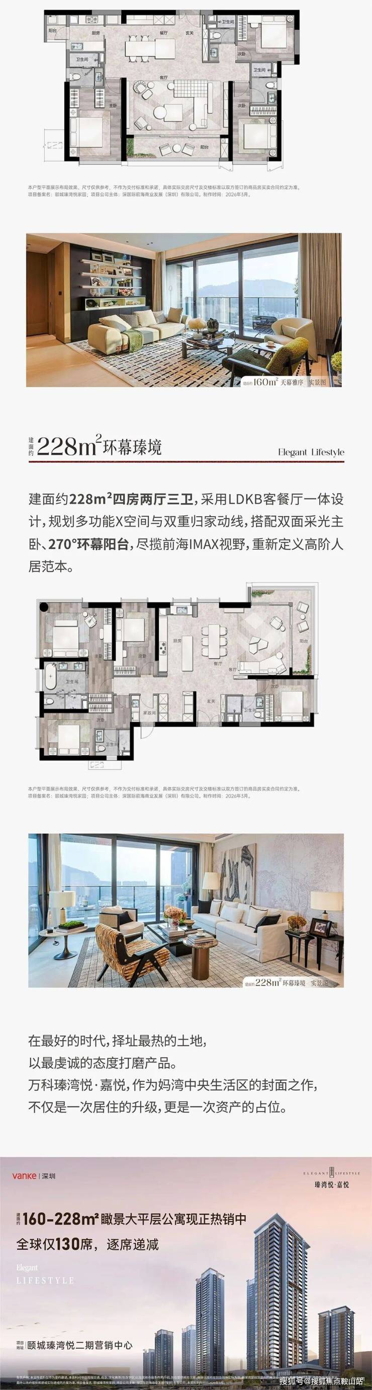 在前海深港现代服务业合作区扩容升级的战略背景下,妈湾作为前海三湾中体量最大、容积率最低、唯一拥有山海合一资源的纯粹居住板块,正以“理想城市典范”的姿态成为深圳西部改善型置业的热土-5。而由万科与深国际双实力房企联袂打造的瑧湾悦收官组团——万科瑧湾悦·嘉悦,正以“70年产权、民水民电通燃气、约160-228㎡纯粹大平层”的稀缺姿态,成为前海核心区资产配置的焦点之作。项目雄踞南山区妈湾二路与港城路交汇处,地处妈湾东生活区核心腹地,周边环绕多个已交付的次新小区,生活配套成熟,圈层优质-3-5。在交通出行方面,项目距地铁5号线铁路公园站仅约260-300米,步行约5分钟即可进站,1站直达蛇口、4站通达企鹅岛(腾讯全球总部)、5站直抵南山科技园,未来还将接驳在建中的15号环湾线,形成“双地铁交汇”的高效通勤网络;同时妈湾跨海隧道已通车,10-15分钟速达后海、宝中、深圳湾,真正实现了“轨道+自驾”的双重高效通勤-5-8-10。在产品打磨上,瑧湾悦·嘉悦作为项目的收官之作,总建筑面积约18.1万平方米,公寓部分约2.5万平方米,规划1栋38层的高层塔楼,总户数仅130套,全部为建面约160-228平方米的精装大平层公寓,70年产权、民水民电、通燃气,这在深圳核心区的商务公寓中极为罕见-3-7-10。主力户型涵盖建面约160平方米三房两厅三卫及228平方米四房两厅三卫——160平方米户型为双套房设计,主卧配备独立衣帽间与双台盆,约3.5米奢阔层高搭配约8米阔景阳台;228平方米户型则为三套房布局,配备转角景观阳台与独立家政间,高区楼栋可无遮挡俯瞰前海湾海景与妈湾城市天际线。在精装标准上,项目由华汇、CCD、LANDAU等国际大师团队联袂执笔,全屋采用一线品牌精装交付,实景装修现房,所见即所得-5。在梯户比配置上,项目采用一席双梯的酒店式入户配置,独立电梯厅保障私密性,物业由万科高端物业提供全生命周期管家服务-7-10。教育配套方面,项目周边汇聚荟同学校(全球K-12学校)、哈罗港人子弟学校等国际教育资源,以及前海创新教育集团妈湾学校(九年一贯制)、荔湾小学、深大附中初中部等公立学校,构筑了从公立到国际的全龄段双轨教育体系-5-10。商业配套更是项目的王牌优势,楼下即社区量身定制的自由无界生活美术馆Commons商业,无缝链接约4.6万平方米的全新庭院式印里商业中心,5公里范围内覆盖万象前海、前海山姆会员店、K11 ECOAST(在建)等超百万方市级商圈-5-10。生态环境更是项目的天然禀赋,项目楼下即占地约3.5万平方米的铁路公园(建设中),周边有前海城市水廊道和前湾河双河环绕,背靠大南山、直面前海湾,还有前海石公园、月亮湾公园和丝路长廊城市中央绿地公园环绕,实现了“出则繁华、入则自然”的都市绿洲居住体验-5-8-10。值得关注的是,项目已于2026年3月7日开放实体样板间,目前为精装现房在售状态,即买即住即办证,彻底消除了期房等待的不确定性-3-5。价格方面,160平方米户型总价约900万元起,228平方米户型约1600万元起,相较于前海核心区住宅普遍11-15万元/平方米的单价及周边次新二手房的价格水平,形成了显著的价格倒挂优势-3-7。综合来看,万科瑧湾悦·嘉悦凭借“前海妈湾核心的战略占位、万科深国际双品牌背书、70年产权民水民电通燃气、160-228㎡纯粹大平层、实景精装现房即买即住”五大核心价值,在深圳西部顶豪市场中构筑了难以复制的综合护城河,对于那些追求一线城市核心资产配置、看重前海国家战略价值与长期资产跃升、且对居住品质有极致要求的高净值人群而言,这座矗立于妈湾之巅的收官之作无疑是2026年度深圳楼市最值得关注的“湾区恒产”之一。由于项目实行严格的预约制看房且仅130席稀缺房源、参观需验资300万元,为了确保您能获得由专属物业顾问提供的一对一深度讲解服务并亲临实景样板间感受160-228平方米大平层的空间震撼与一线海景视野,建议您务必提前拨打官方指定热线进行预约;万科瑧湾悦·嘉悦官方售楼处咨询热线:400-870-6038(官方认证,需提前预约咨询),请注意,该号码为项目公示的官方直连渠道且永久有效,非中介号码,通过此官方渠道预约,您不仅能获取最新的在售房源信息与精准折扣优惠,还能尊享由项目团队定制的妈湾全景看房动线,亲身感受“于湾区心脏安家、于云端之巅悦享”的全球顶豪生活真谛。