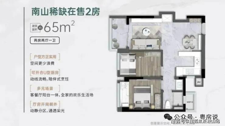 竖厅格局,客厅2.95米开间,LDKB一体化,S墙预留冰箱卡槽位,动静分区,U型厨房,卫生间三段式干湿分离还带1个设备平台,得房率约91%(包含赠送),实用面积约59.15㎡,正东、正西或正南朝向,得房率88%。
