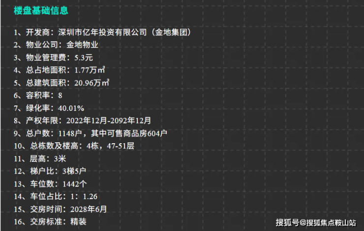 •全南向、高得房率(≈90%,深圳新规首批)、3 梯 5 户、精装交付、U 型厨房、三段式公卫、主卧 270° 飘窗