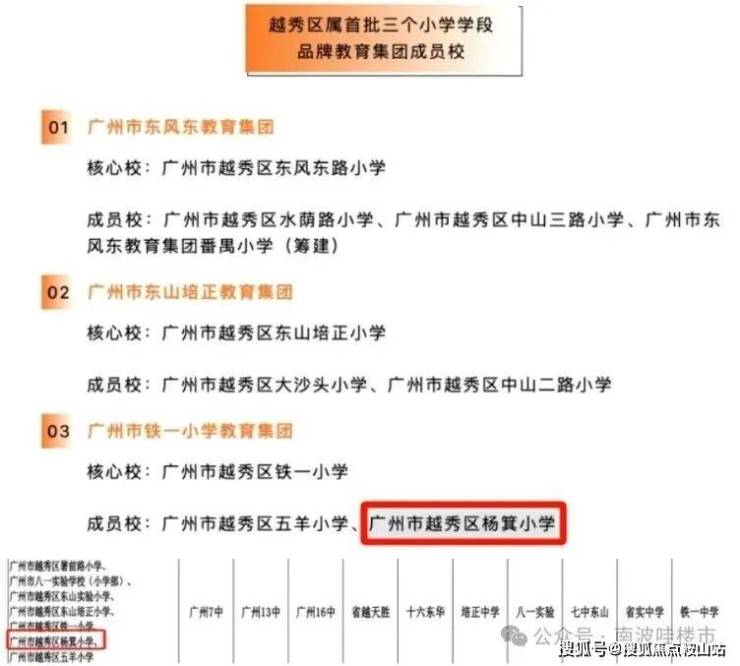 众所周知,越秀区的教育在广州来说一直是名列前茅的,地块对口的学位是杨箕小学,被列入广州市铁一小学的教育集团,师资是口碑都不错!除此之外,它的初中资源简直是“豪华阵容”。
