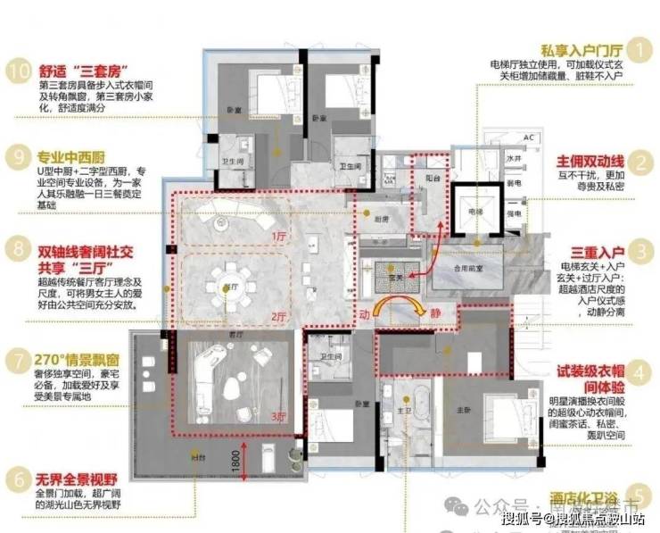 约 18.9 米南向奢阔面宽,搭配挑高设计,赋予空间朗阔气度;约 122㎡定制化社交巨厅,可随心打造多元生活场景,满足商务宴请、家庭聚会等高端需求。尤为惊艳的 15 米转角观景阳台,将一线湖景悉数收纳,让碧波涟漪与园林盛景成为窗前永恒的诗意画卷。于此,每一寸空间都诉说着对生活的极致追求,重新定义城市湖居生活的奢华想象。