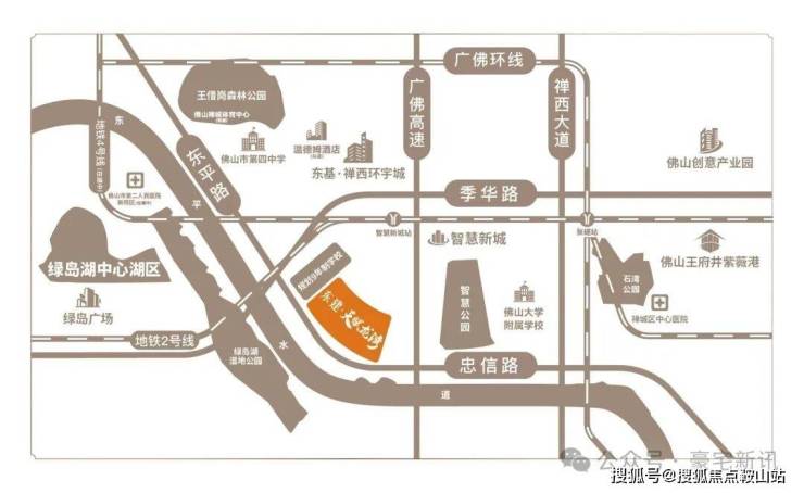 •双地铁交汇+一站换乘广佛环线 :直线距离约500米达线智慧新城站(佛山地铁2号线),还有佛山地铁4号线(在建中)、广佛环线(已开通),可迅达广佛。