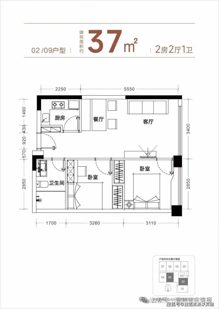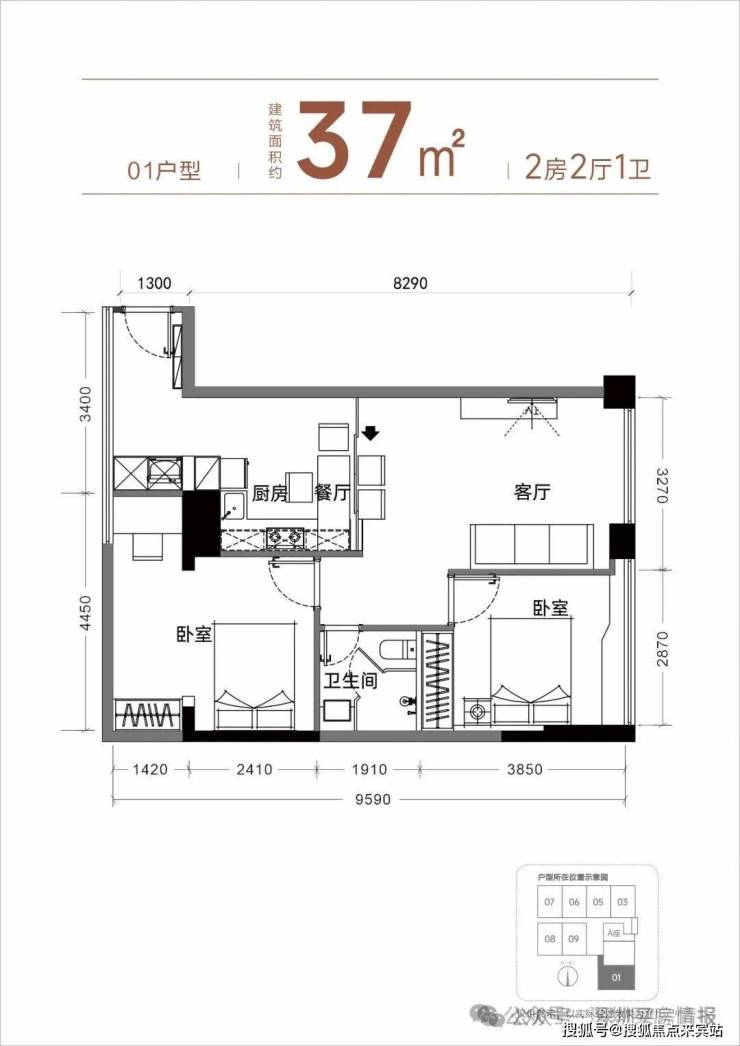 【产品面积】约37㎡两房(实际套内使用面积接近54㎡)