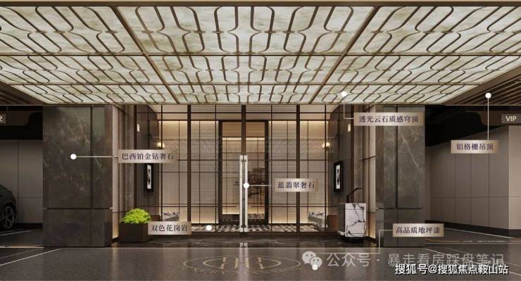参考亚洲瑰丽酒店风格,打造“一步一景 一堂三景”的星级酒店式归家大堂;材质上采用定制双色石材、巴西铂金钻等奢石,并植入百年非遗西关手打铜工艺,彰显高级质感与格调。