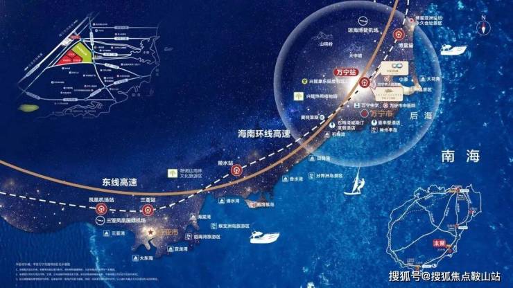 项目毗邻万宁高铁站,距离汽车站约3公里,距离环岛高速入口约2.3公里,立体交通路网,擎引高效便捷出行,接驳岛内外无界生活。