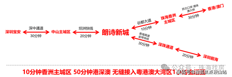 项目位于珠海中山双城交汇处,享中珠双城配套。政府重点规划南部新城核心高铁中山南站(规划接驳广州地铁18号线、广中珠澳高铁、南深高铁)距项目5分钟路程,带动片区近百万人流出行。