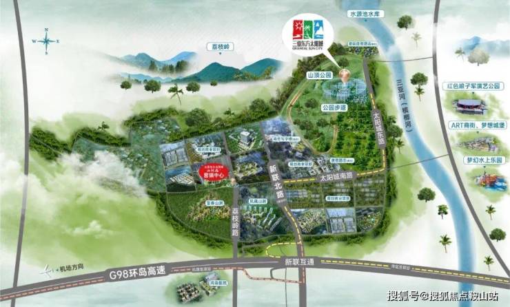 三亚·东方太阳城,西卧山顶公园,东拥三亚河(槟榔河),近享水源池水库、荔枝岭生态景观,面朝三亚主城区、三亚湾等,以山河为靠,以繁华为景,打造天赋上境栖居地。