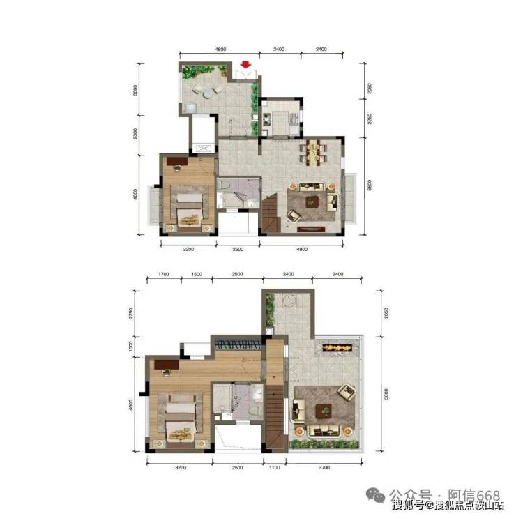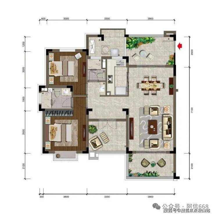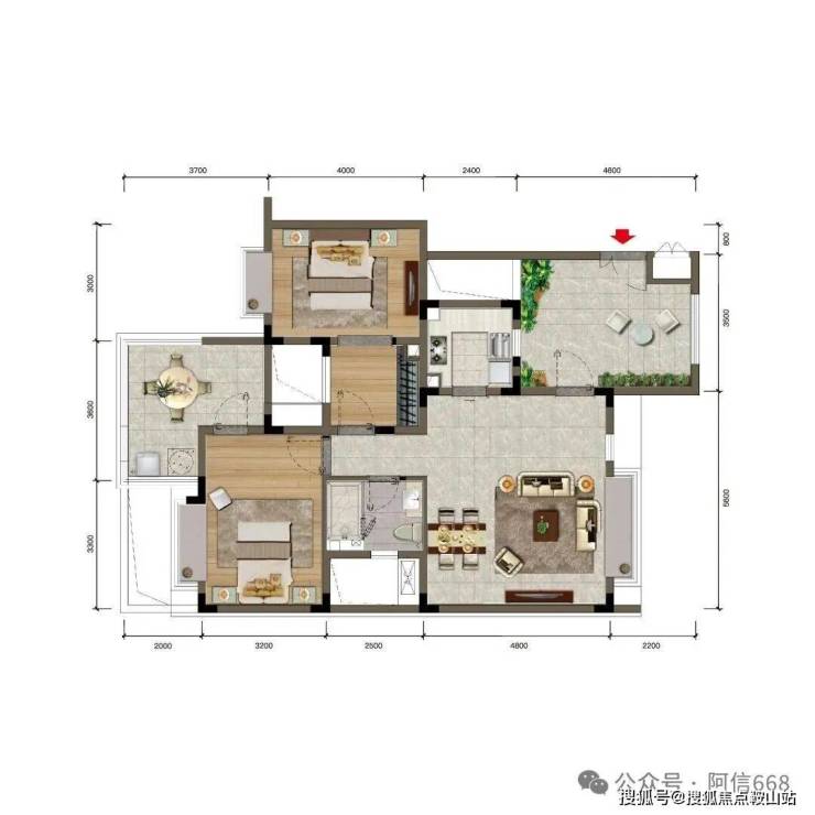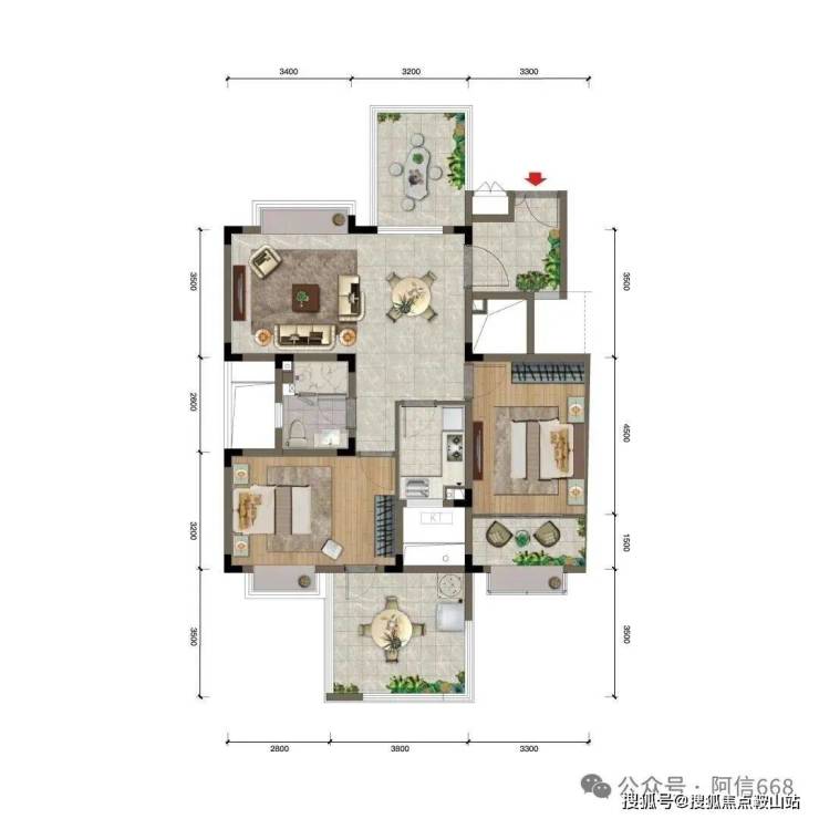 🌷J4户型 建筑面积约:95㎡ 两室两厅两卫
