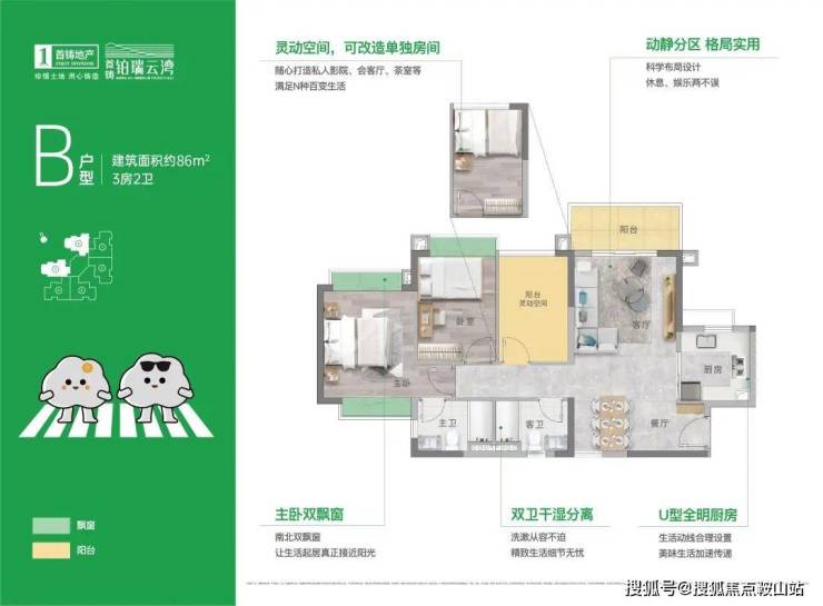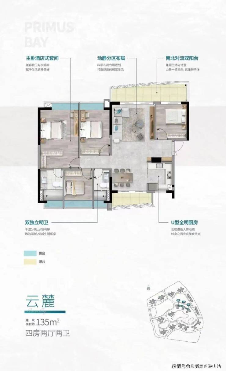 餐客厅约7m大面宽,约6m宽幕阳台,主卧套房设计