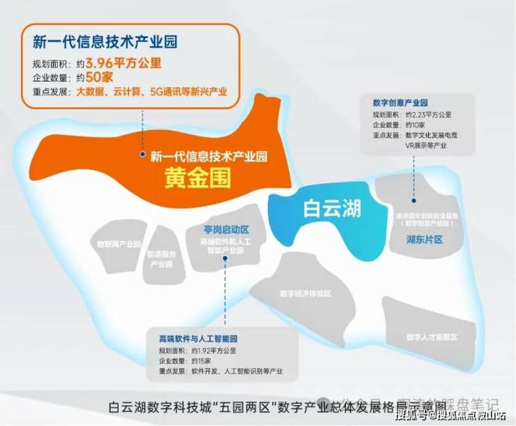 黄金围为白云湖数字科技城最大板块,进驻企业约50家,约占总数的68%。哈工大海特云谷产业园预计2023年建成;北京中关村双碳数字能源产业园预计2025年竣工;东区54班九年制学校预计2024年建成
