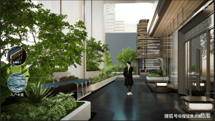 渗透式建筑景观规划——在户外空间融入自然元素的无障碍设计、临近建筑周边的会客厅场地,形成自然景观由外至内的延伸,让滨江樾业主在享受会客厅的休闲时光时,能与城市核心的自然之美,不经意相逢。