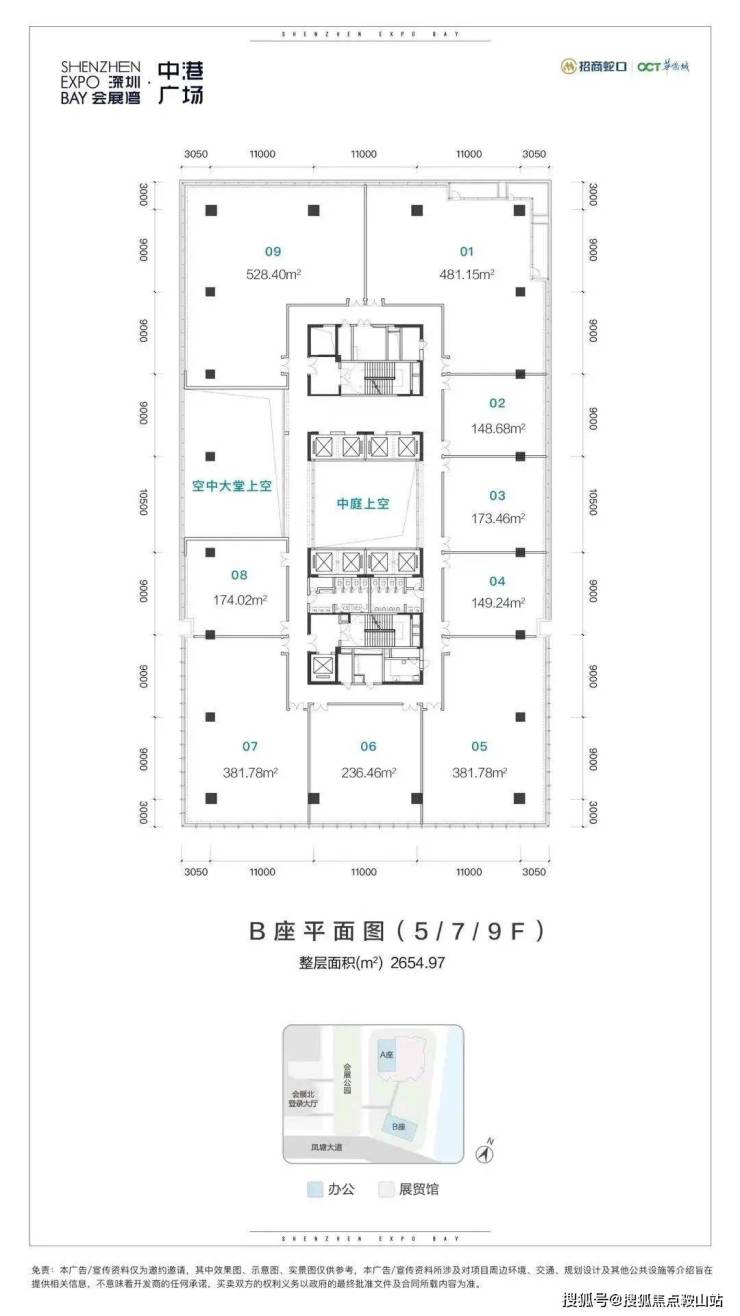 B座总楼层:18F;B座大堂层高:约9.6米
