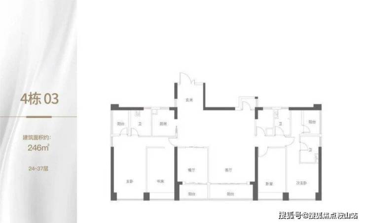 项目规划4栋住宅共261套,今年首开1栋高层住宅,197-237㎡四房大平层。