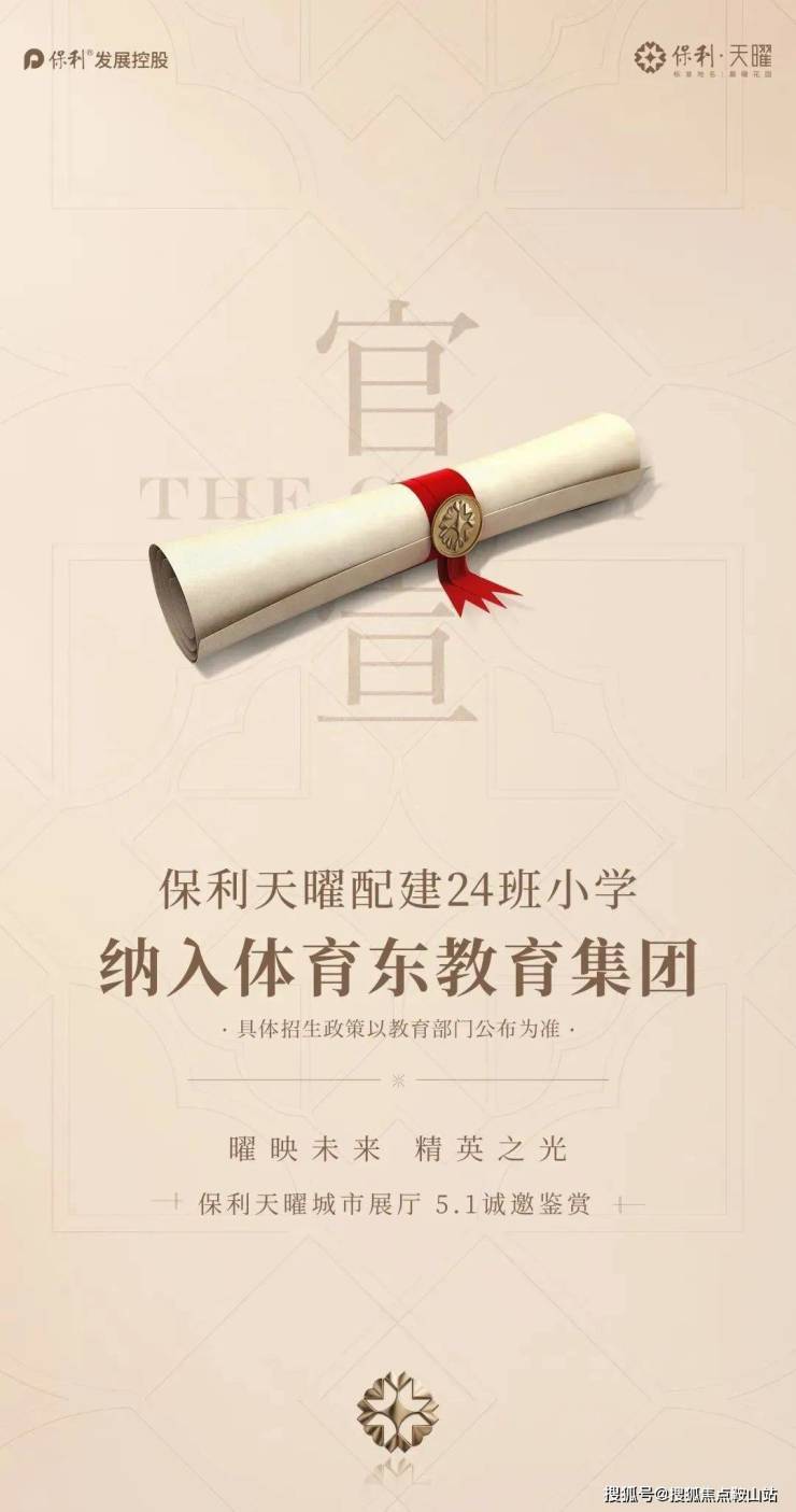 今天,保利天曜的教育配套迎来重磅利好,由项目配建的24班小学,将纳入体育东教育集团!
