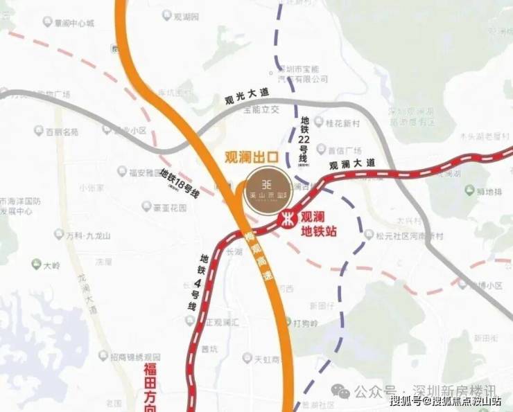 项目毗邻地铁4号线观澜站(步行约10分钟),未来可换乘在建的22号线,形成双轨出行网络。通过4号线10站可达深圳北站,16站直达福田CBD。周边路网发达,紧邻梅观高速、龙华大道等主干道,快速联通深圳全域。但当前公共交通依赖地铁及公交接驳,部分公交线路覆盖不足,且地铁站距离约1公里,对无车族稍显不便。规划中的慢行系统将串联观澜河沿线公园,提升步行便利性。