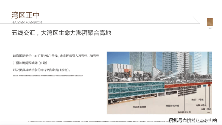 地块北侧临河,西面瞰海,临近在建前海国际枢纽中心,未来这里将汇集3条地铁线(1号线、5号线、11号线)与2条城际线(穗莞深城际、规划港深西部铁路)。