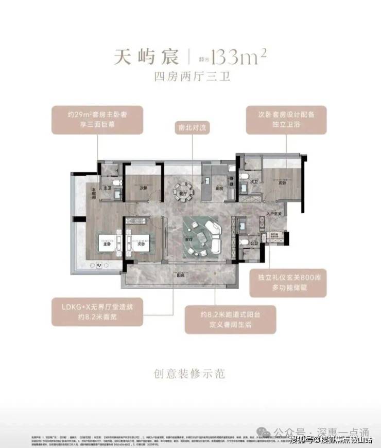 133㎡的4房3卫,折后总价506-529万/套,单价3.81-3.98万/㎡。