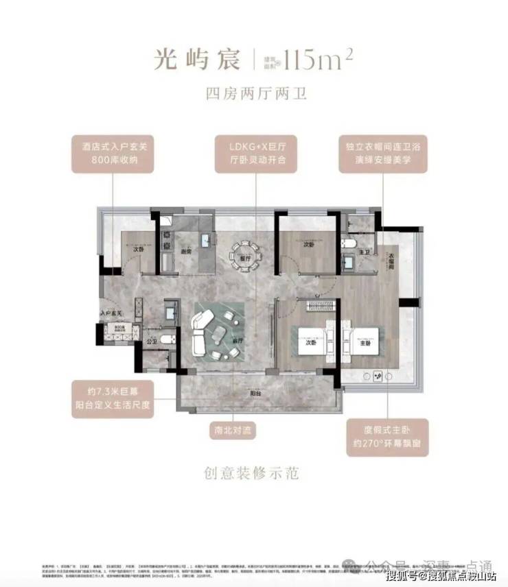 114㎡的4房2卫,折后总价424-444万/套,单价3.69-3.87万/㎡。