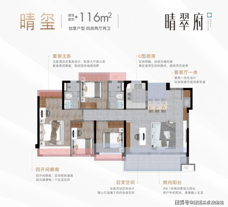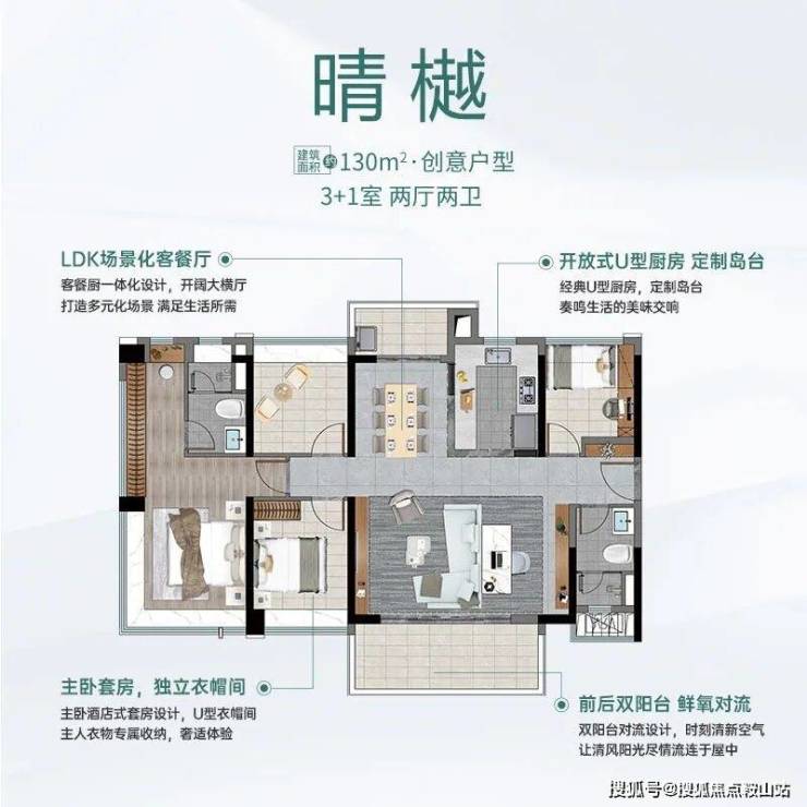 户型:建面约76-130 ㎡三至四房宽景臻品