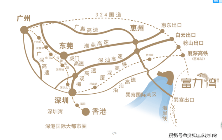区位情况项目位于广东三大滨海旅游景区(巽寮湾、双月湾、亚婆角)的中心地带,多维立体交通,1小时达深圳,2小时覆盖珠三角生活圈,是距离深圳、广州、东莞等珠三角核心城市最近的、配套与景观资源最丰富的滨海度假项目。