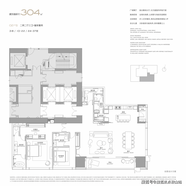 面积设计:300、400、460、570、1000平米纯粹大户型,空间方正,极致私密。