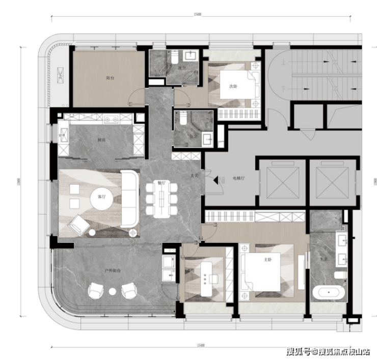 186㎡四房,除了空间更大外,还做到端厅设计,270°观景,户外阳台很奢阔,双套房设计,主卧套房带浴缸。