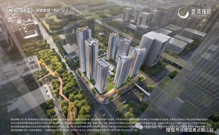 项目由招商开发,占地约2.43万㎡,总建面约16.67万㎡,容积率4.9。包含5栋30-39F的商品房(645套)和2栋30-44F的保租房(自持租赁560套,移交政府租赁140套),7栋楼合围呈U字形组成,附带一所幼儿园。