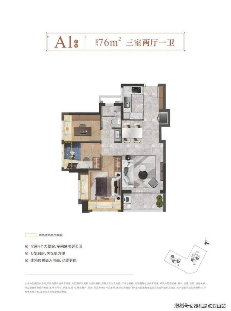 ——建面约76㎡3房2厅1卫