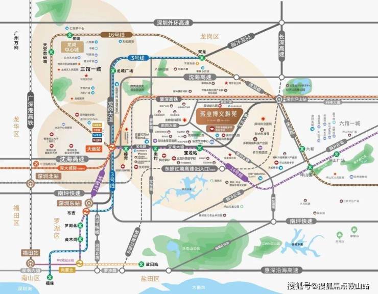 16号线坪山站 :坪山站升级“坪山综合交通枢纽”,16号线、高铁、深大城际(宝安机场——坪山,在建)三轨交汇;