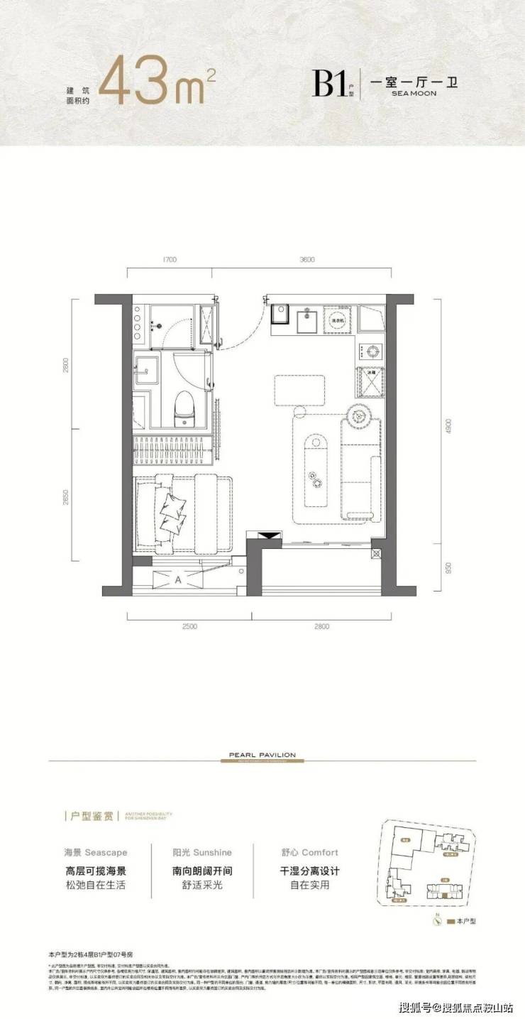 招商望海玥位于深圳市南山区蛇口新街与渔村路交汇处、距离地铁2/8号线东角头站267米;推出的是389套公寓产品、36--60平一至二房.
