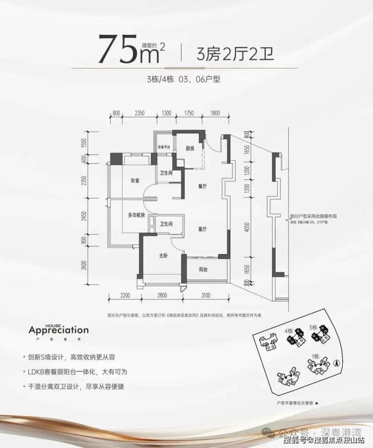 一共8条腿,选择比较丰富。70-80平户型在市面上有楼盘在售,但基本为3房1卫或2房1卫,溪山禾玺基于新规设计优势,75平直接升级为3房2卫,具备功能全的同时还压低了总价。